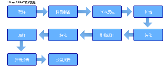 SNP分型服务简介单核苷酸多态性(SNP,Single Nucleotide Polymorphism): 是指在基因组水平上单个核苷酸变异所引起的DNA序列多态性。Sequenom MassARRAY® 平台利用SNP位点两个等位基因之间的分子量差异来进行检测。基本原理为基质辅助激光解吸电离飞行时间质谱 (MALDI-TOF MS) 技术。流程图技术优势1、灵活:自由选