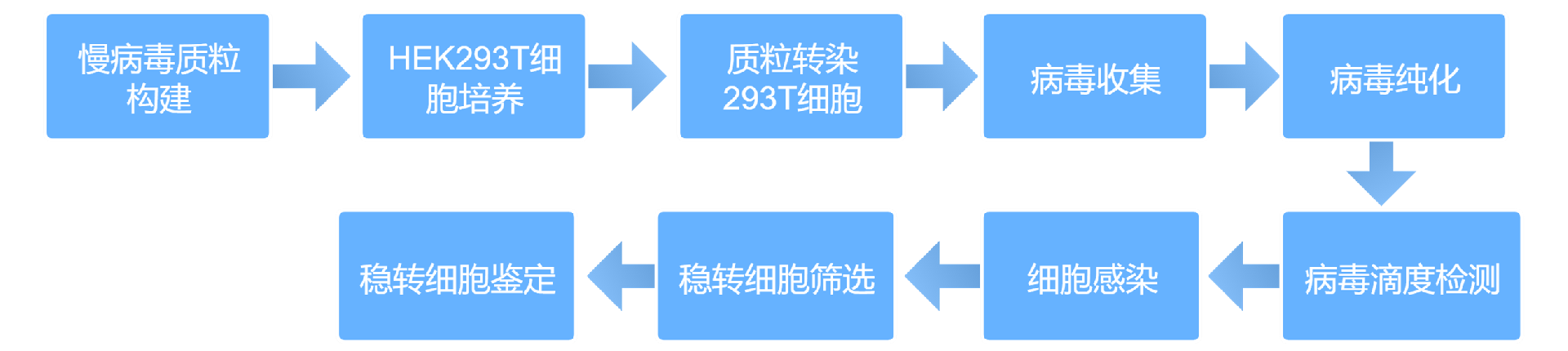 技术原理慢病毒包装:使用3质粒慢病毒包装系统,慢病毒系统使用pLKO.1-EGFP、psPAX2、pMD2.G,过表达慢病毒系统使用pLVX-AcGFP、psPAX2、pMD2.G三质粒系统,将质粒混匀后使用磷酸钙转染方法转染至HEK293T细胞中,培养48h后,收集上清。纯化后留取部分检测病毒滴度,其余病毒冻存于-80℃冰箱中。滴度检测:将病毒颗粒使用梯度